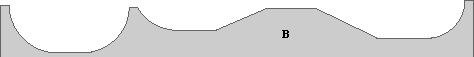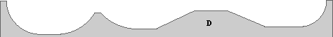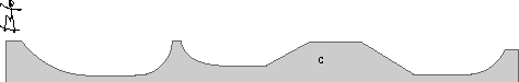 Varying the depths, as in figure B, accommodates all the different heights, while allowing the objective height to be relatively the same. A skateboarder can more easily maintain his speed with a design like this. Also, don't make obstacles on the edges smaller than the ones in the middle as in figure C. This sends skaters out of the park or into fences. Better to keep the obstacles in the middle a little bit smaller as in figure D.